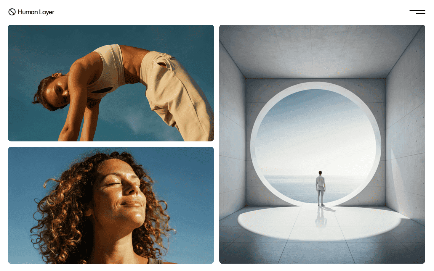 The final landing page increased engagement and click-through rates while maintaining a minimal, modern aesthetic. Human Layers® now benefits from a focused, conversion-ready experience that supports campaigns and creative partners effectively.